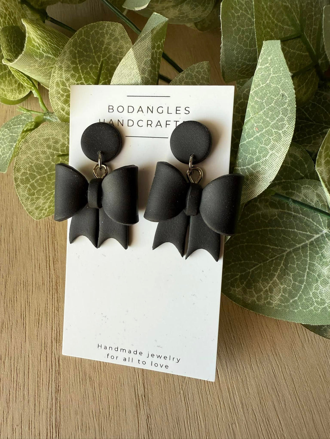 Large black bows with button top. A portion of sales from this pair will go towards a medical fundraiser.